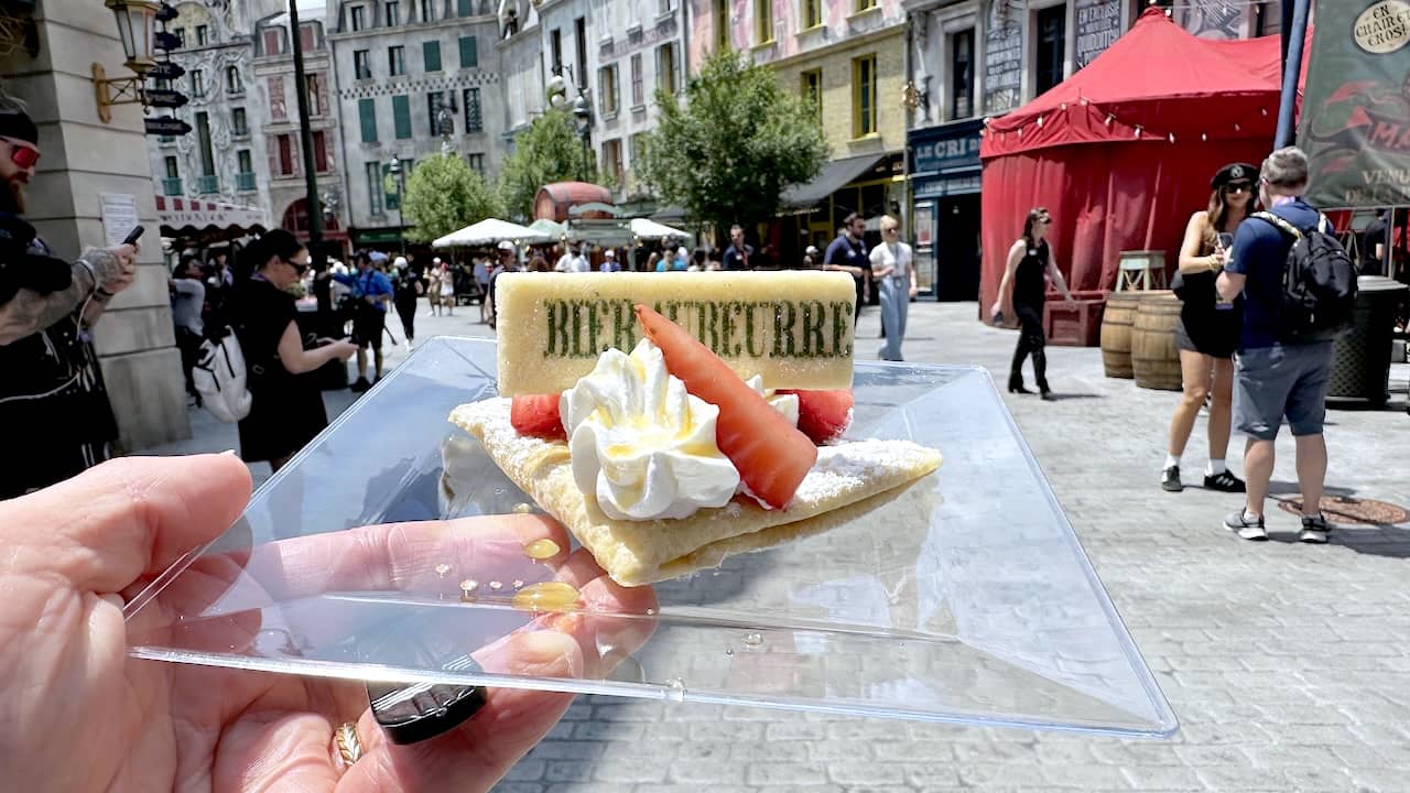 When it is time to eat, the Café L’Air De La Sirène may be your best bet here, serving Quiche Lorraine, Salad Niçoise, Jambon Buerre, Boeuf Bourguignon, and more, including what has become the land’s iconic treat – a Butterbeer crepe.