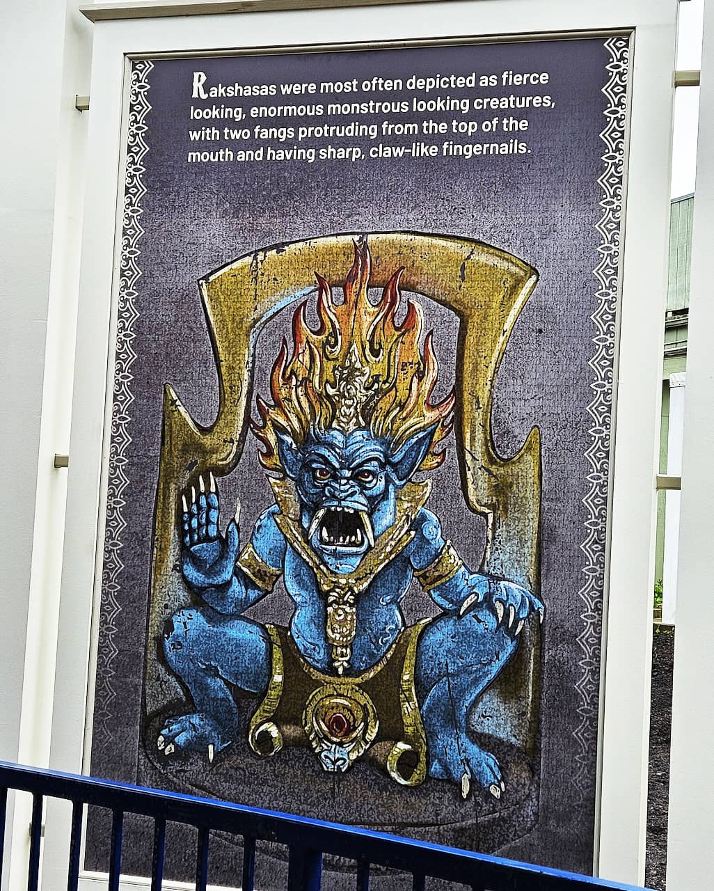 The queue has some theming that, while nothing in the realm of what Epic Universe is up to, gives it just enough punch to amuse people who are waiting in the queue. A Rakshasa is a shape-shifting demon which thematically fits in with the Demon coaster that this coaster partially runs parallel to. While it doesn't show in the ride video below, I have it on pretty good authority that before the ride opens, they are going to add some speakers to the top of the lift hill, and have the Rakshasa demon roar right before you're dropped.