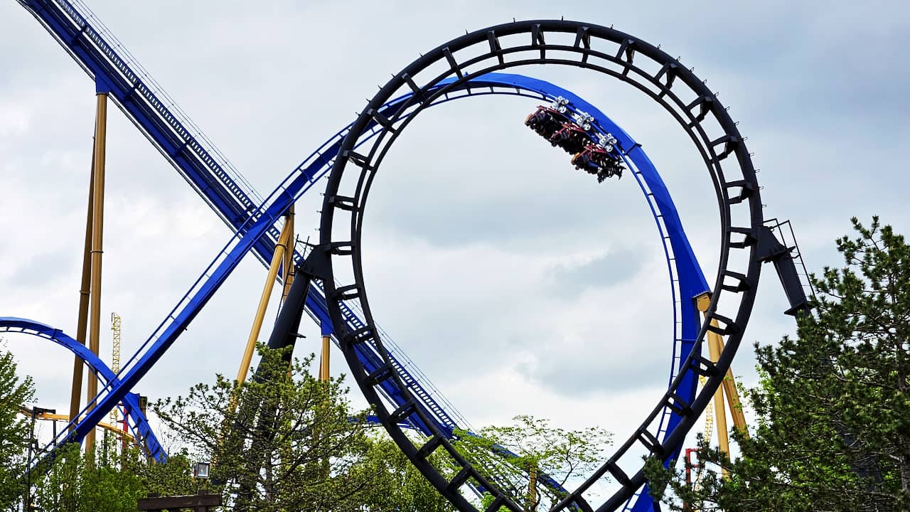 After the impressive first drop, there are five different types of loops: an Immelmann, Dive Loop, Zero-G Roll, Corkscrew, and finally a Barrel Roll before performing some tight low-to-the-ground twists and turns before hitting the brake run. Add to this a vertical loop from the Demon coaster next door, and you can pretty much fill up your inversion Bingo card for the day.