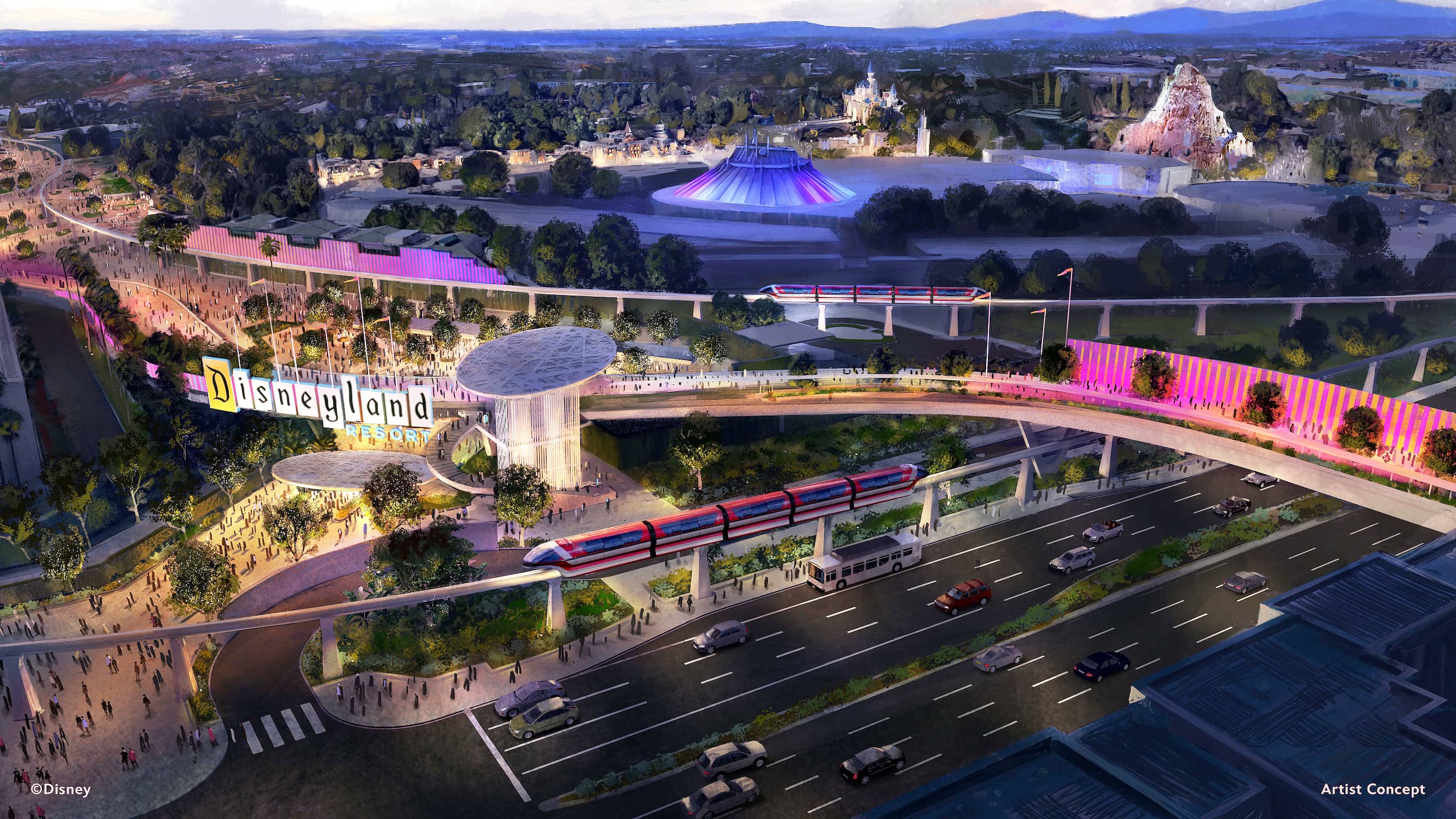 Monsters Inc. is going away to clear space for a new Avatar attraction, which Disney has advertised as a boat ride. Last night, Disneyland also released concept art for its new pedestrian bridge over Harbor Boulevard, which suggests that the esplanade bus lanes serving the Toy Story parking lot - lanes which are located directly behind the Monsters Inc. show building - also will be going away.