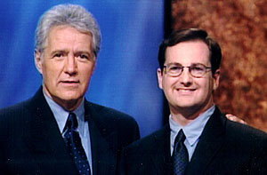 In the weeks leading up to the show, we submit half a dozen vignettes or anecdotes about us that we think would be interesting for the "interview" part of the show. Plus, we fill out a survey about embarassing things we've done, interesting people we've met -- that sort of thing. From that, the contestant coordinators cull three interesting little stories to pass along to Alex. He decides during the commercial break before that which ones he will use.