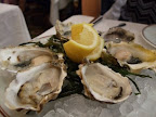 It was fine dining without the snootiness. They start you off with twisted bread and pistachios, but no bread plate. We had a fantastic waiter, Damian (kind of an ironic name considering his angelic nature), who had no problem with recommendations (I especially enjoyed the German beer he recommended to me that is only available in two other restaurants outside of Germany). We disposed of whatever dignity we had left and decided to slurp down some oysters.